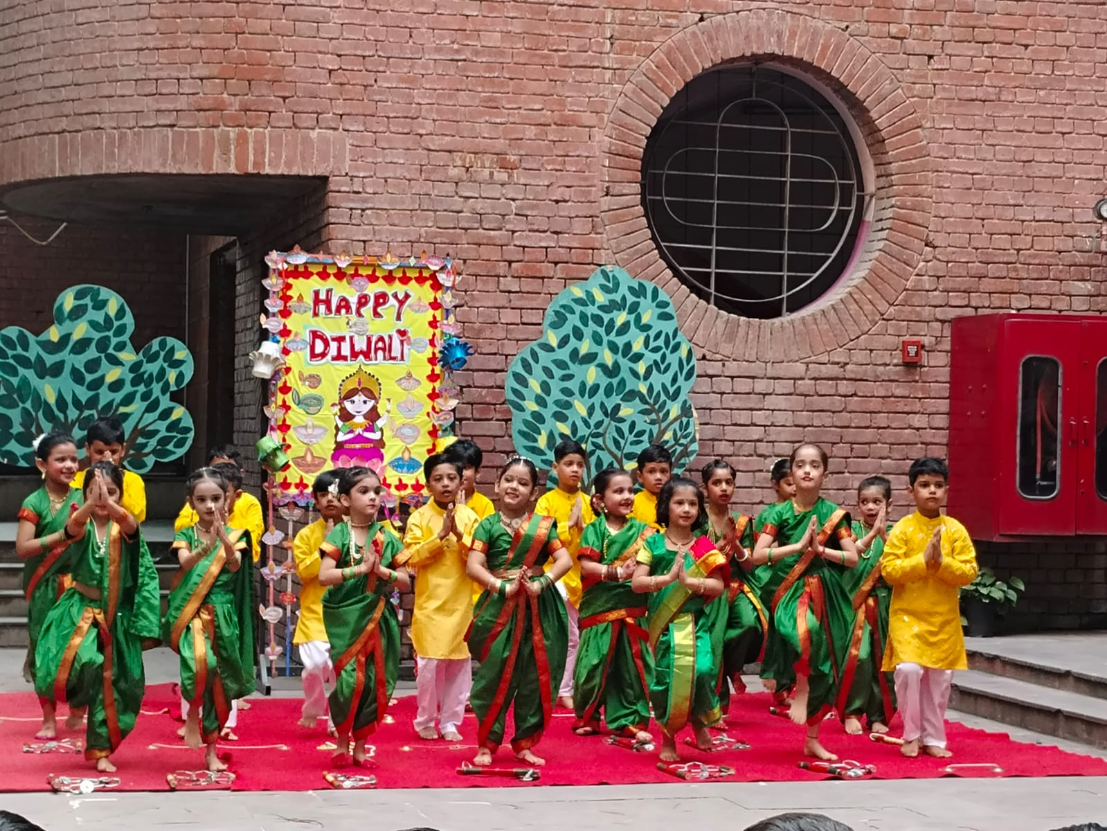 The Pre-Primary wing celebrated Diwali with great enthusiasm on 16th October 2025. The event featured Ganesh Vandana, an eco-friendly Diwali skit, and joyful dances by Nursery and KG students. Principal Dr. (Mrs.) Anju Tandon encouraged celebrating a safe, green Diwali, reflecting the festival’s spirit of devotion and togetherness.