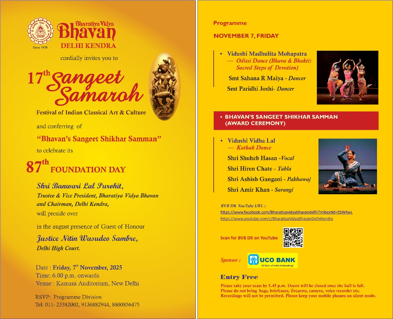Bharatiya Vidya Bhavan’s Mehta Vidyalaya celebrated its 67th Annual Day on November 14, 2025, with great enthusiasm. The Chief Guest, Retd. General Manoj Pande, along with other dignitaries, graced the occasion.